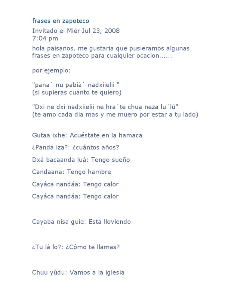 85 Palabras En Zapoteco Traducidas Al Espanol