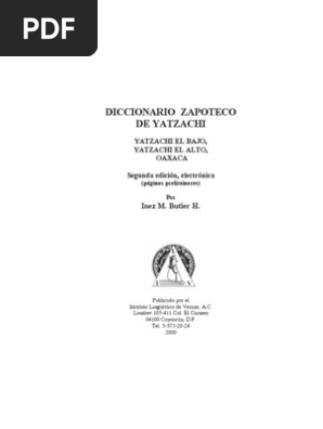Diccionario Zapoteco de Teotitln del Valle - Espaol. DatoImportante Para que no seas vctima de fraude por cajas de ahorro EligeBien. Diccionario Zapoteco Istmeo- Espaol.